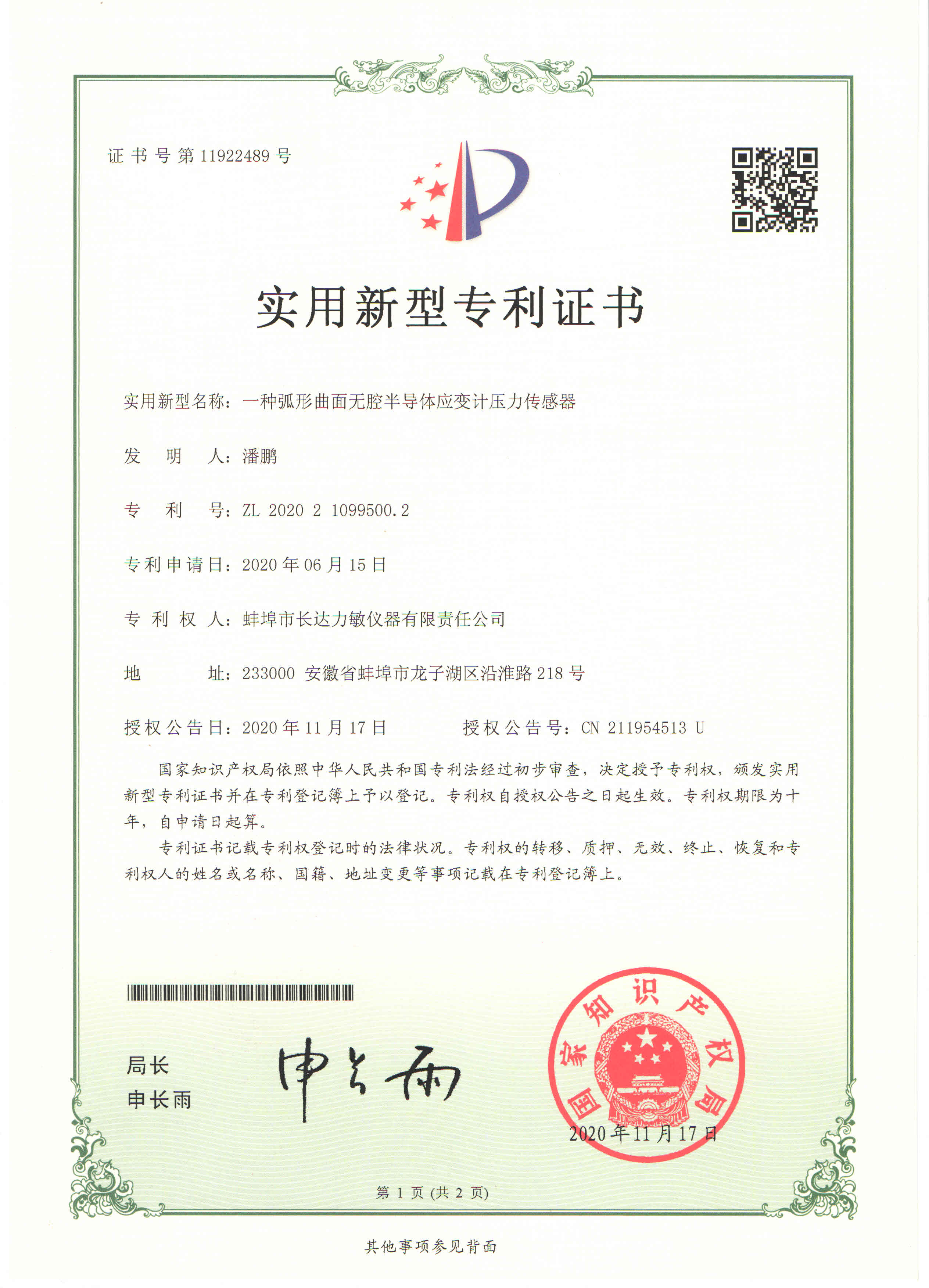 一種弧形曲面無腔半導(dǎo)體應(yīng)變計壓力傳感器