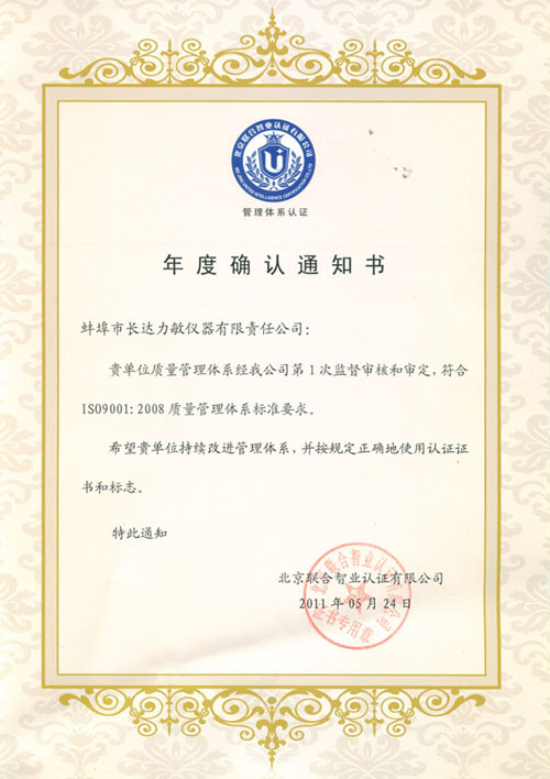 公司已通過ISO9001:2008年度審核