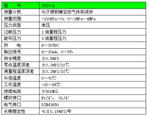 STZ7-A型空壓機(jī)壓力傳感器普遍用于壓縮機(jī)、制冷機(jī)控制與測(cè)量領(lǐng)域,可用于測(cè)量低量程的壓力,包含負(fù)壓。敏感元件采用陶瓷芯體,有穩(wěn)定性和可靠性。陶瓷傳感器有抗腐蝕性能,可替代進(jìn)口擴(kuò)散硅壓力變送器產(chǎn)品。